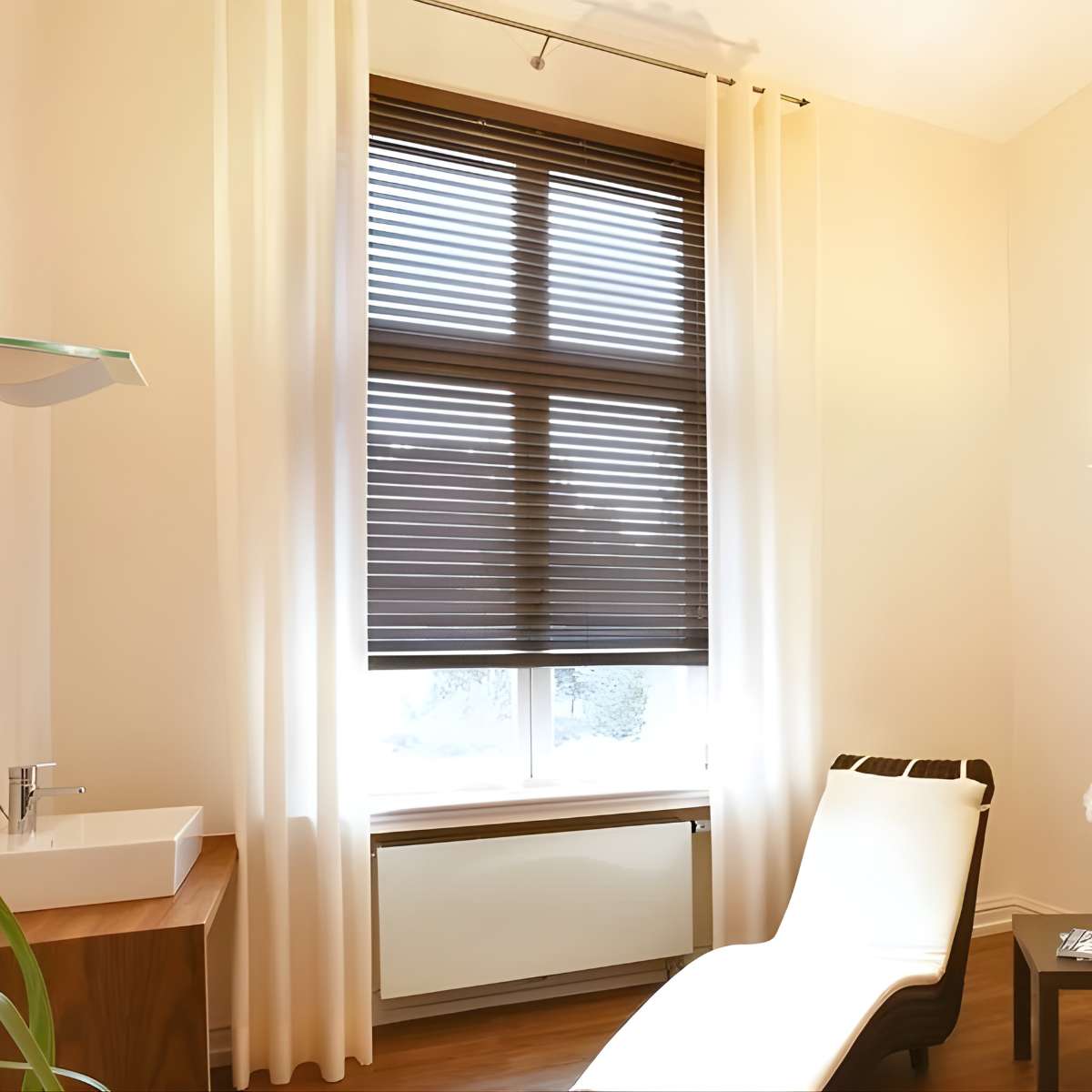 Las persianas de madera horizontal de 50 mm realzan la belleza de interiores modernos o clásicos. En el hogar, aportan calidez a salas, comedores, dormitorios y estudios. En espacios corporativos, transmiten una imagen profesional y acogedora. También son muy valoradas en hoteles, restaurantes y oficinas boutique por su estilo natural y elegante.