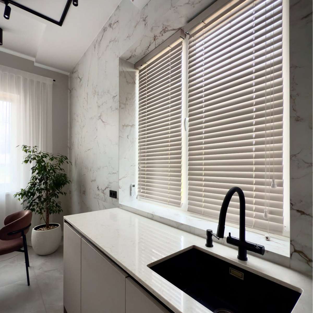 Las persianas horizontales de PVC de 50 mm son perfectas para cocinas, baños, lavanderías y oficinas donde se requiere control de luz y resistencia al agua. También son ideales en departamentos de playa o zonas costeras, donde la humedad ambiental suele afectar otros materiales. Su acabado brillante o satinado combina fácilmente con estilos modernos y minimalistas.